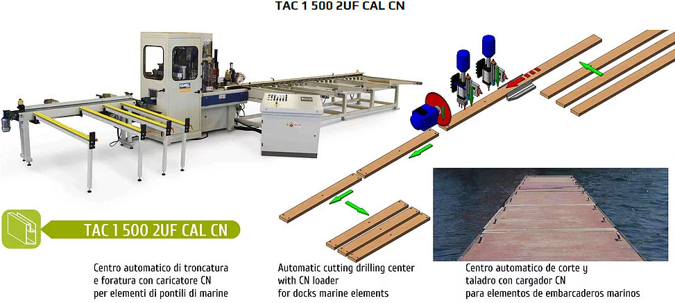 Автоматический сверлильно-отрезной центр с ЧПУ с податчиком для обработки элементов пристаней.