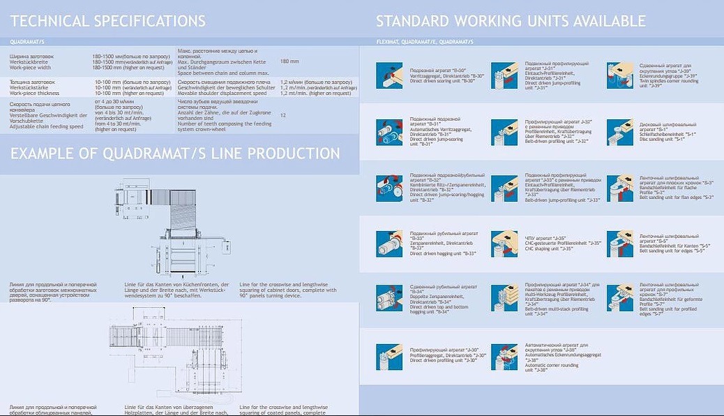 Станок мод. QUADRAMAT для выполнения обработки разного типа как заготовок из массива, так и щитовых заготовок.