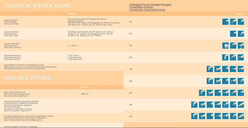 Станок мод. Idramat для обработки торцов паркетин разной длины, перекладин створок и входных дверей. Максимальная гибкость и производительность при изготовлении партий изделий постоянно меняющейся типологии.