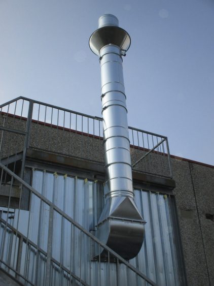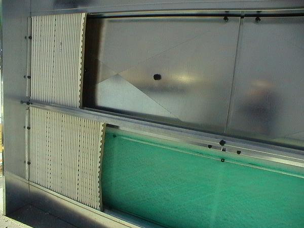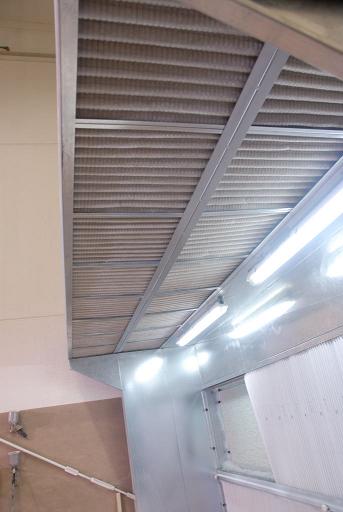 second filtering barrier made of paint-stop glass fiber filter Installed vertically to maximize filtering surface